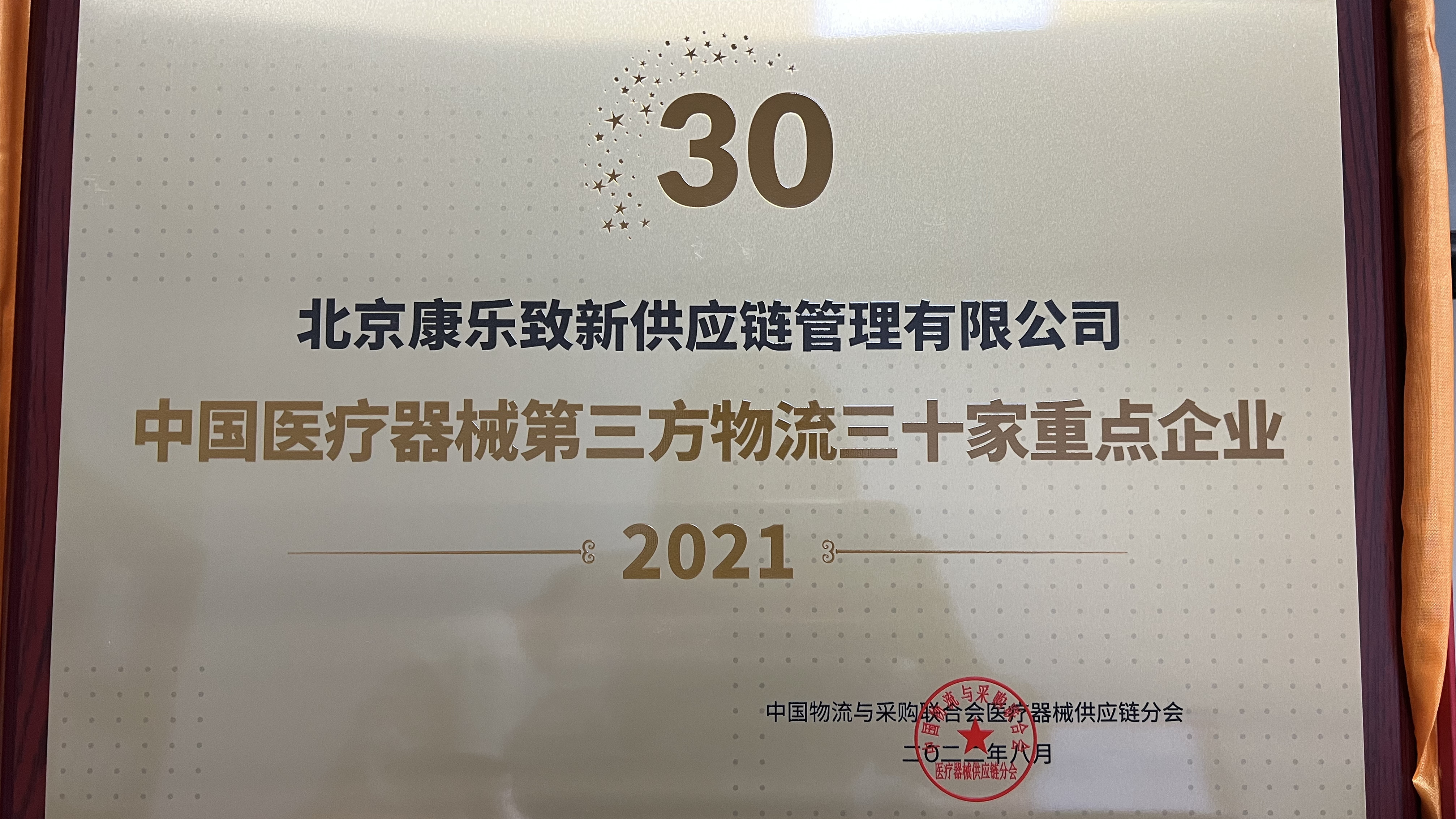 建發(fā)醫(yī)療北京康樂致新榮獲“2021年度中國(guó)醫(yī)療器械第三方物流三十家重點(diǎn)企業(yè)”榮譽(yù)稱號(hào)