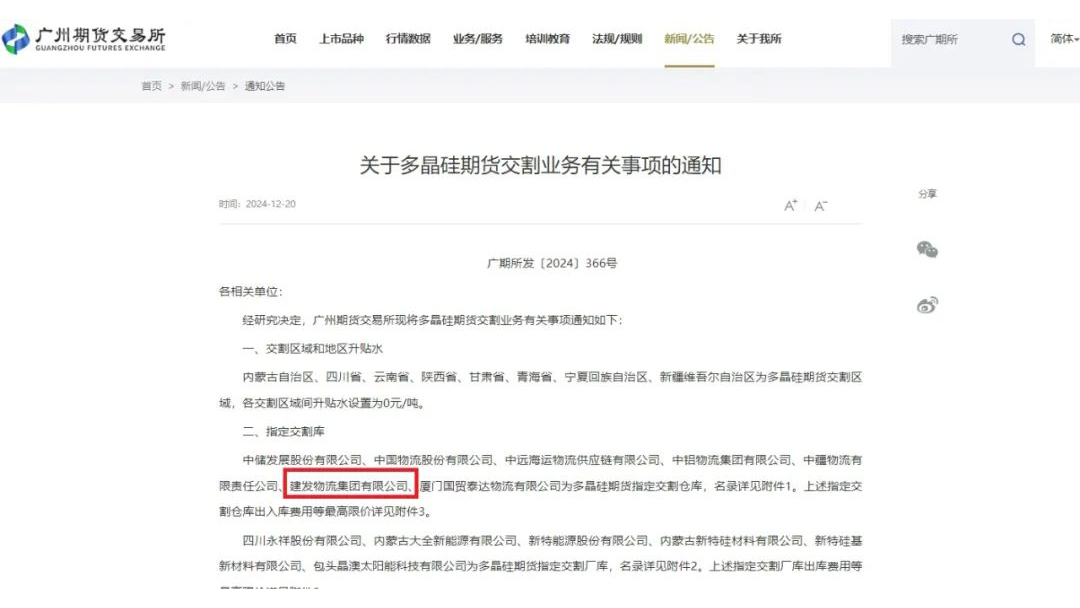 建發(fā)物流獲批多晶硅期貨交割倉(cāng)資質(zhì)